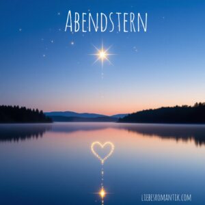 Abendstern – Am Himmel funkelt ein einzelner Stern heller als alle anderen und spiegelt sich im ruhigen Wasser des Sees. Kleine Lichtreflexe tanzen wie Glitzer auf der Oberfläche. Ein poetischer Abendgruß, der Hoffnung, Liebe und innere Ruhe ausstrahlt.
